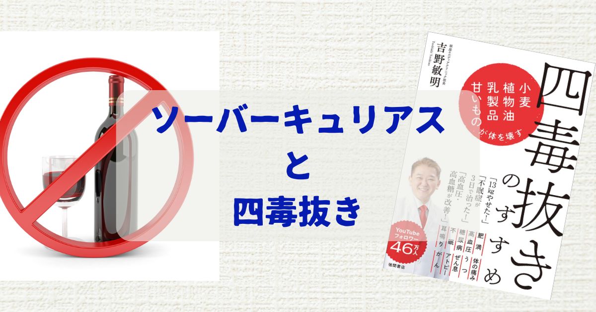 なお、拙著「シンプル食生活とソーバーキュリアス」においても、ソーバーキュリアス維持のためのシンプル食生活を提唱していますが、吉野敏明氏の言う「四毒抜き」にかなり近い食生活になっています。